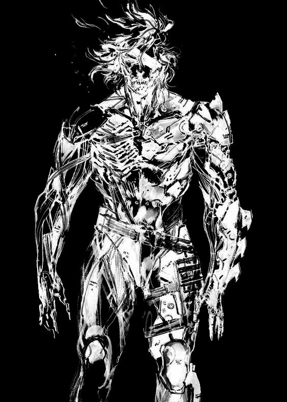 >46's exosuit, "L.I.N.K." - Linking interplanetary neuro kinesthetics - is the highest form of technologocial advancement in the world of exosuits>Channels energy seamlessly throughout the suit, reacting and adapting to different energies 46 passes through it>Constructed with a combination of sheikah technology and carbon fiber, among other magic-based materials